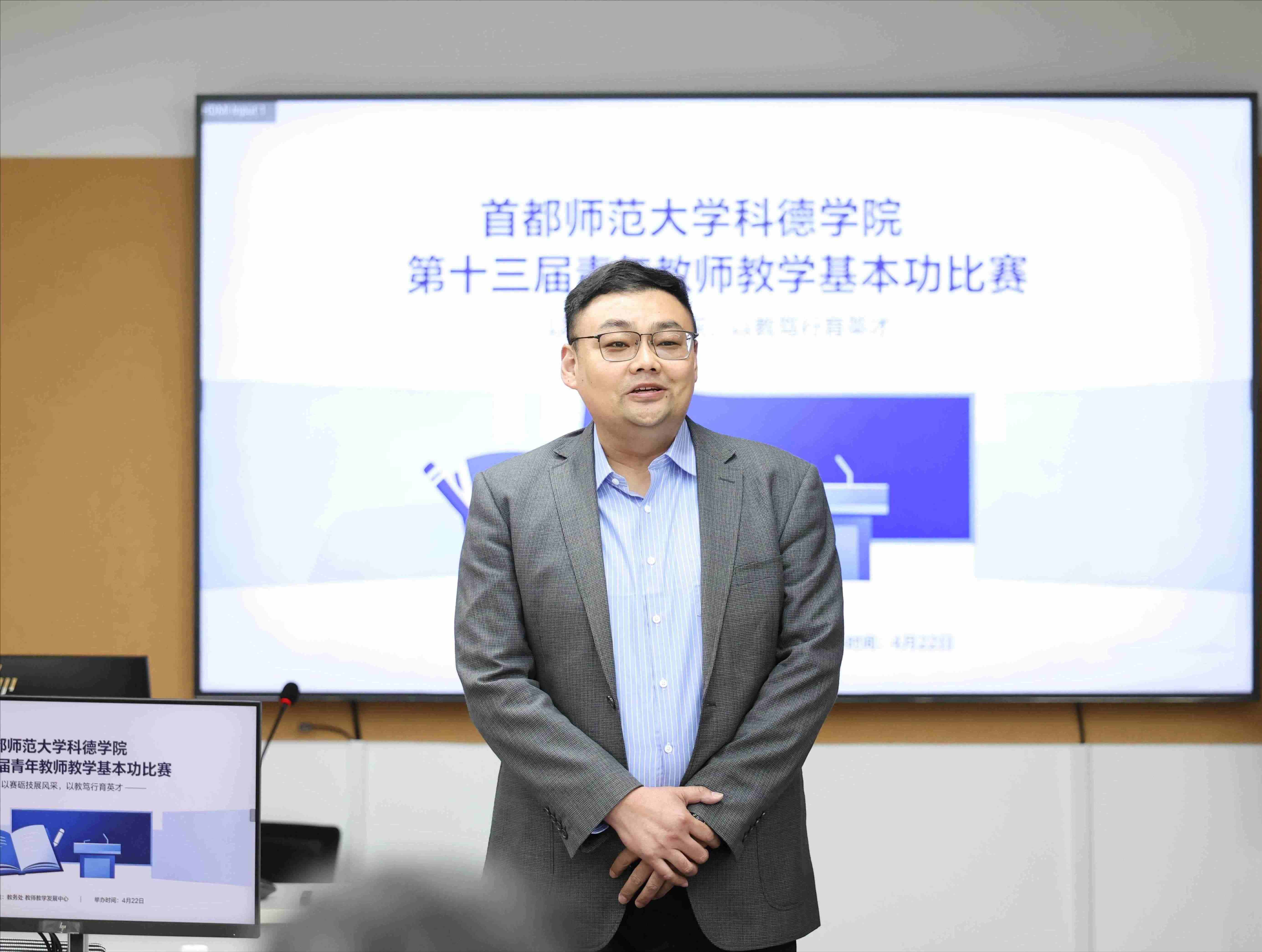 春山可望,教研同行;匠心筑梦,笃行致远。4月22日,首都师范大学科德学院第十三届青年教师教学基本功比赛在实验实训中心314智慧教室圆满落下帷幕。本次比赛由学校教务处、教师教学发展中心联合举办,共有14名青年教师参加了此次比赛。副校长赵飞、校长助理曹恰、各二级学院院领导和教学督导专家组出席了此次活动,比赛由教师教学发展中心陈蛟云老师主持,评委由教学督导和各二级学院教学专家组成。